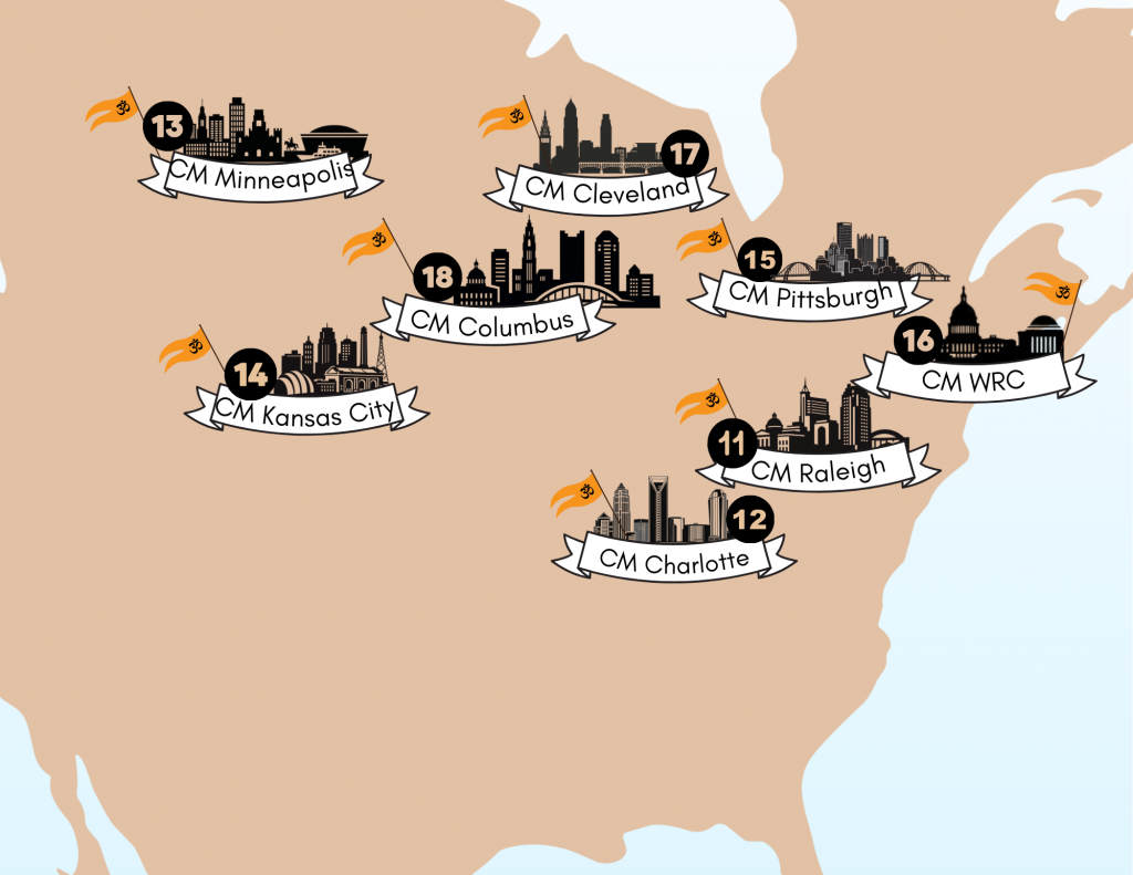 | Pittsburgh | Apr 13 – 19 | https://cmw.chinmaya75.org/event/chinmaya-amrit-yatra-cm-pittsburgh/ | |