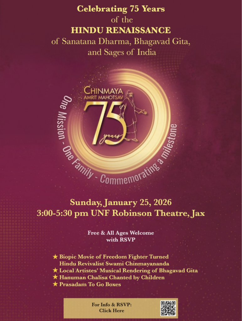 All are welcome with love to a very inspiring program celebrating 75 years of Hindu Renaissance.