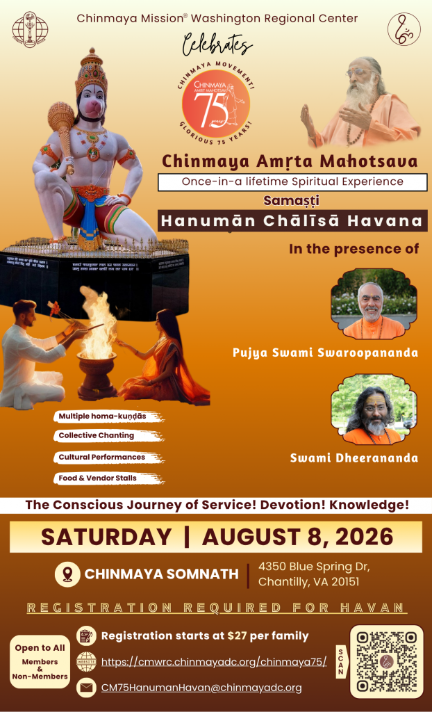 This sacred event will be conducted in the presence of Pujya Swami Swaroopananda, Global Head of Chinmaya Mission, along with Swami Dheerananda.