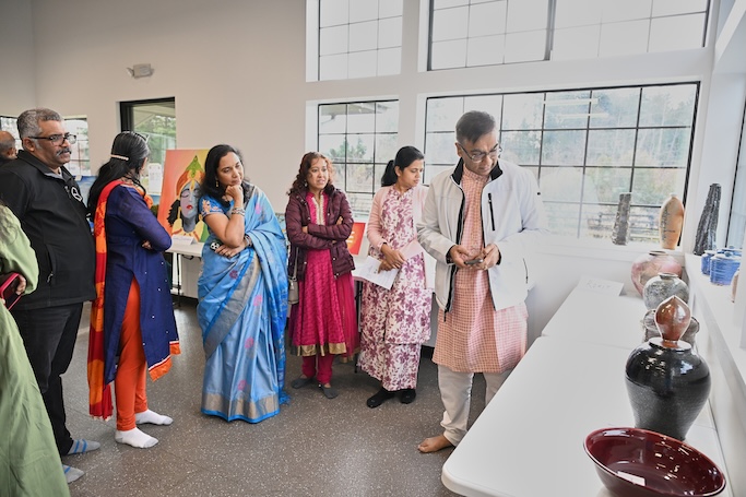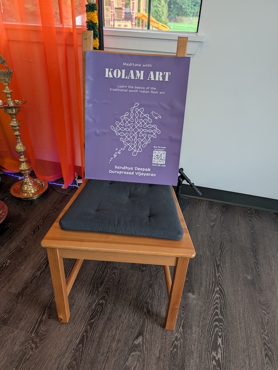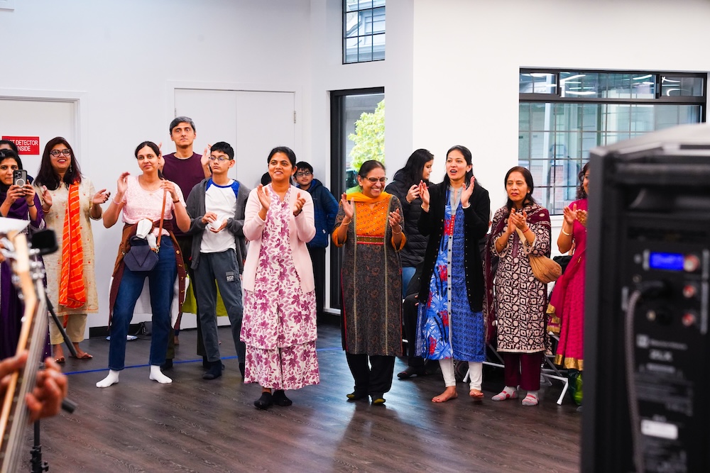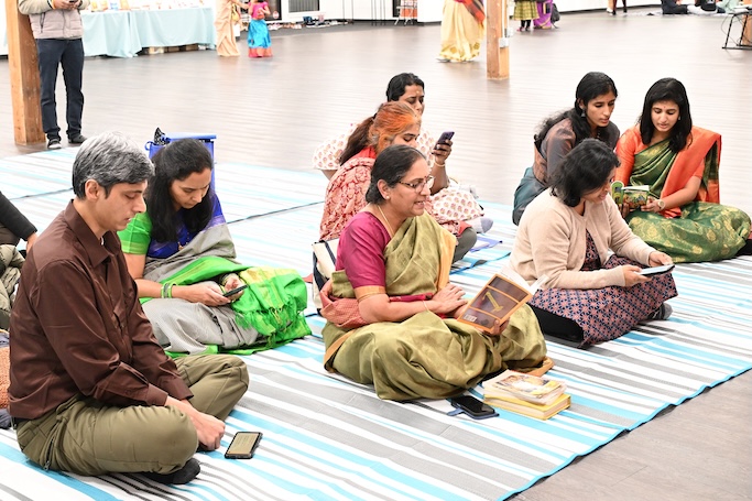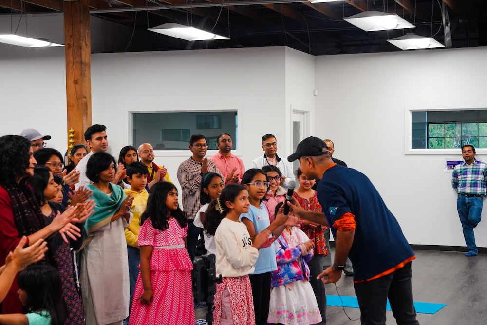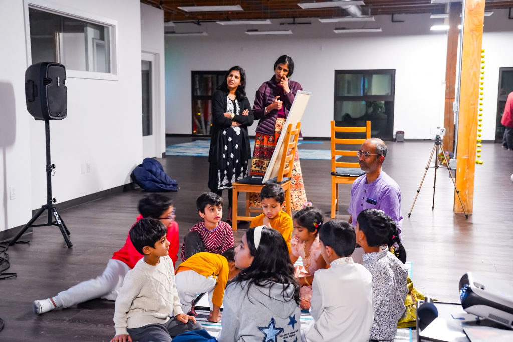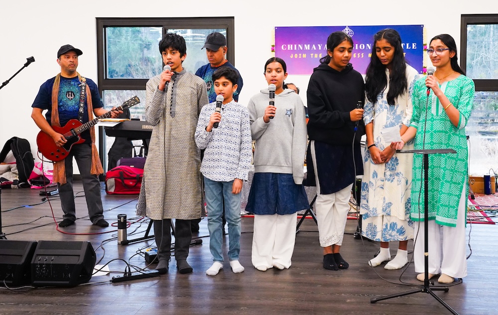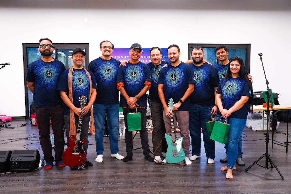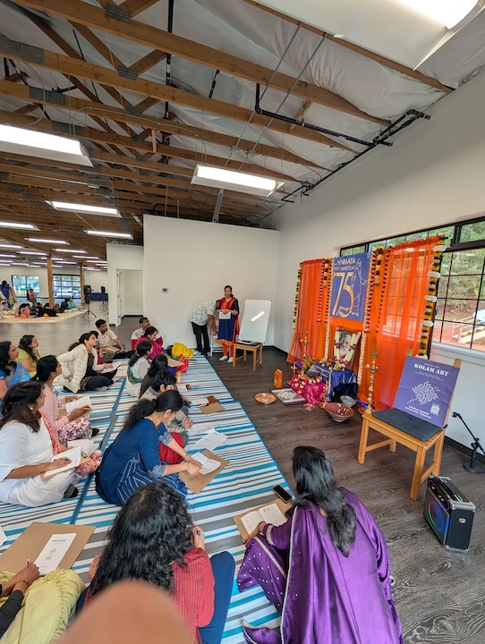 Day 6 unfolded as a vibrant cultural celebration with the Chinmaya Kala Art Festival, showcasing stunning works by local artists and a children’s art competition that highlighted the creativity and devotion of young participants. Adding to the richness of the day was a Kolam Workshop by a local expert, where participants learned this traditional sacred art form symbolizing harmony, mindfulness, and auspicious beginnings. The evening continued with energizing Bhajan Clubbing led by Seattle-based Desi rock band RimJhim, joyfully blending devotion with contemporary musical expression.